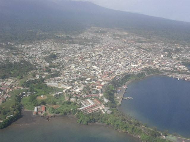 赤道幾內亞(簡稱“赤幾”)位于非洲中部幾內亞灣,分大陸與島嶼兩部分,總共28000多平方公里。其中島嶼部分為比奧科島,約2000多平方公里,在大西洋里,離喀麥隆海岸僅30海里;大陸部分介于喀麥隆與加蓬之間,約26000多平方公里。赤幾總共人口不到100萬,主要是住在大陸的芳族和住在比奧科島上的巴比族。官方語言為西班牙語,是非洲大陸唯一一個說西班牙語的國家。由于被周圍被法語國家包圍,后來又定法語為第二語言。首都馬拉博,在比奧科島北端。