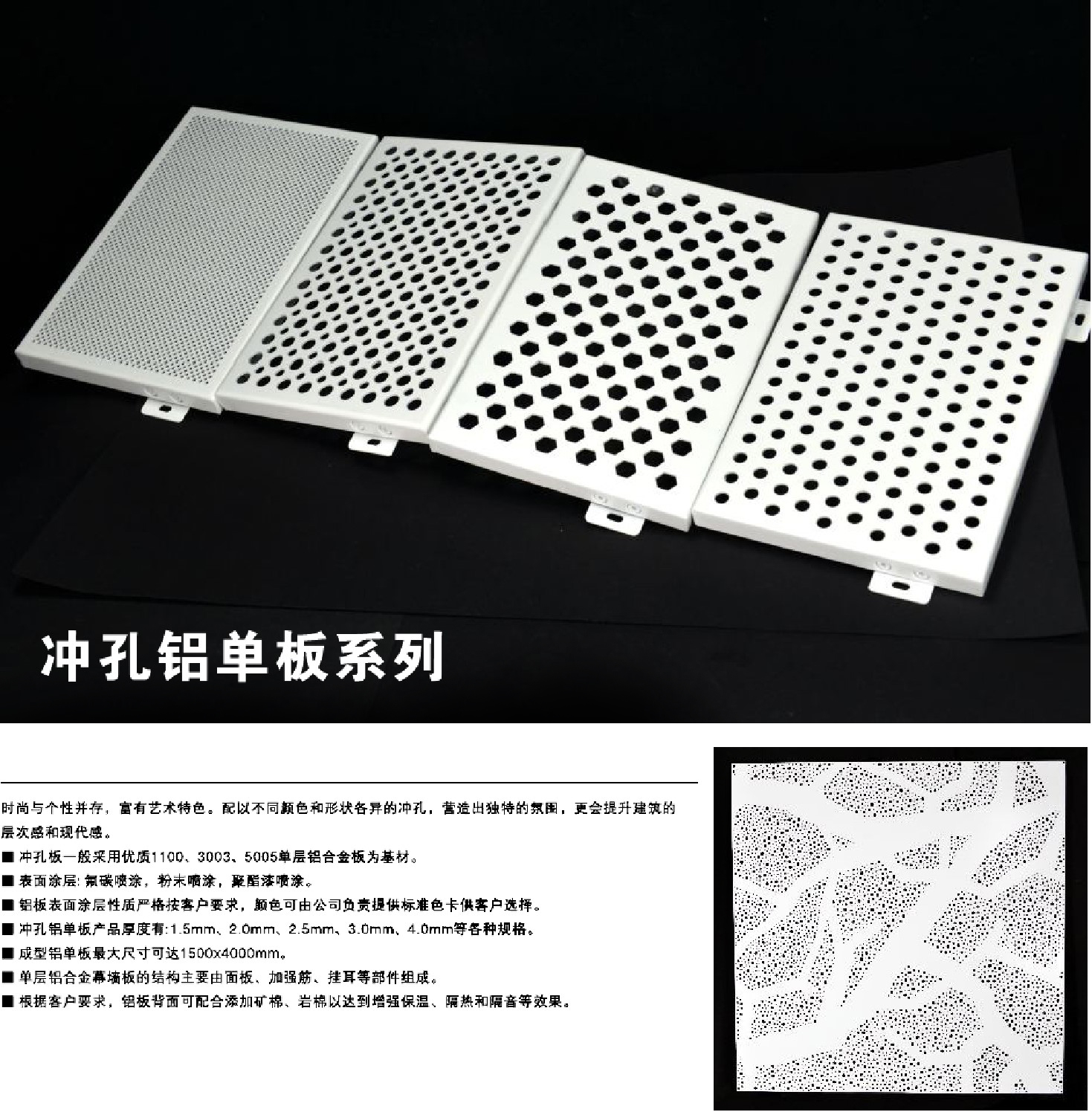 歐斯龍沖孔鋁單板產(chǎn)品系列,優(yōu)選鋁金屬材料,采用電腦數(shù)控沖壓設(shè)備,把設(shè)計好的圖案以不同形狀、規(guī)格的沖孔工藝在鋁板上精美呈現(xiàn)。歐斯龍全新數(shù)控沖孔工藝,突破了在傳統(tǒng)鋁板上單一性、封閉性及平面性,格調(diào)高雅大方,設(shè)計錯綜有致,圖案疏密相間,遠觀剛?cè)岵刺搶嵑魬?yīng),從而為現(xiàn)代建筑空間的裝飾營造出立體、開拓、奇特和震撼的視覺感觀效果。